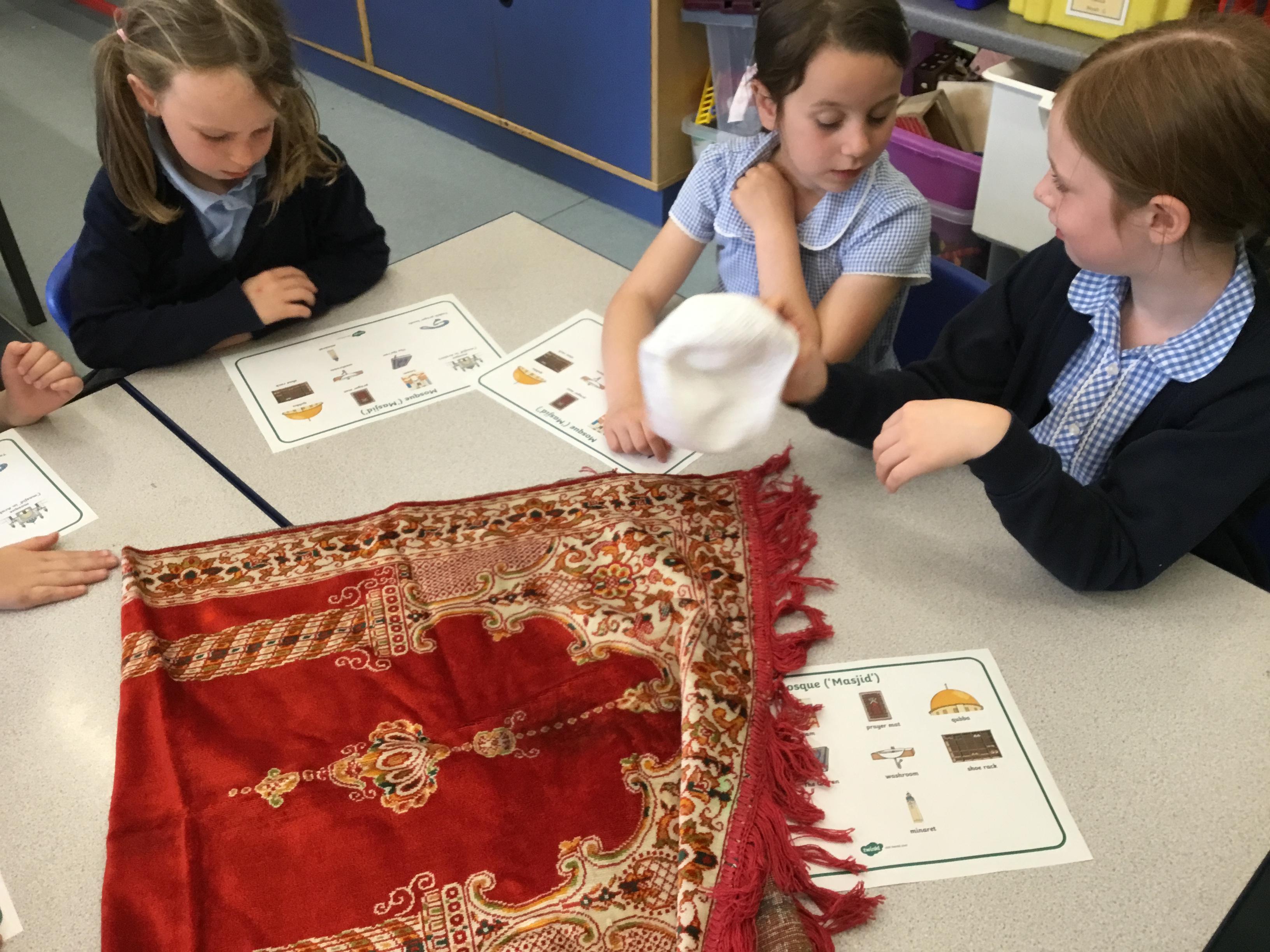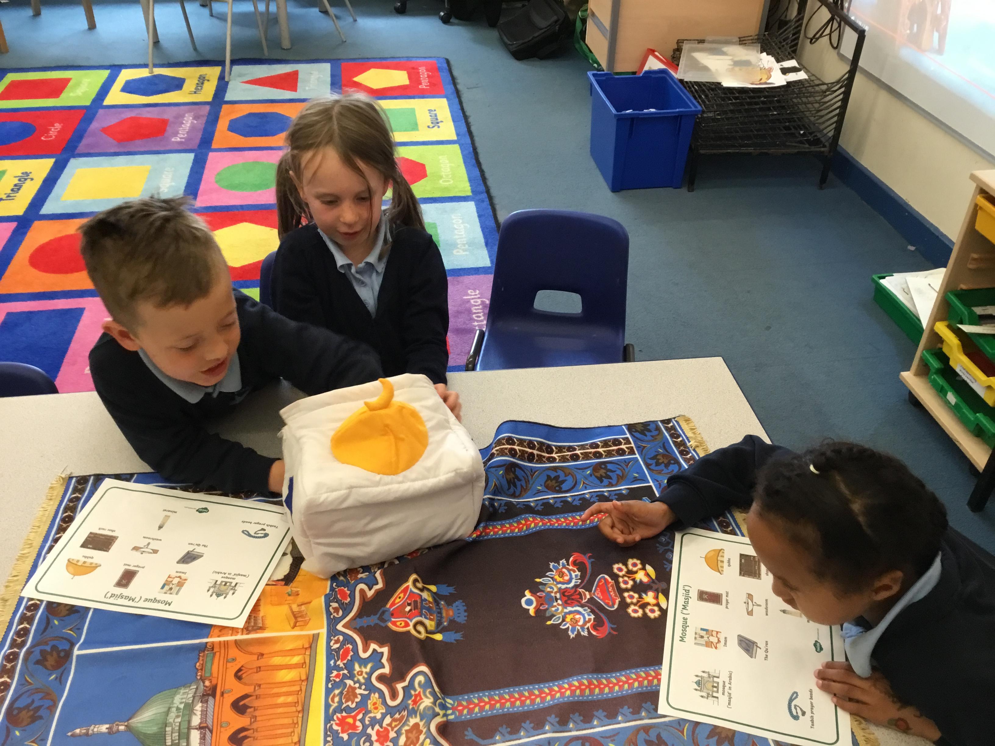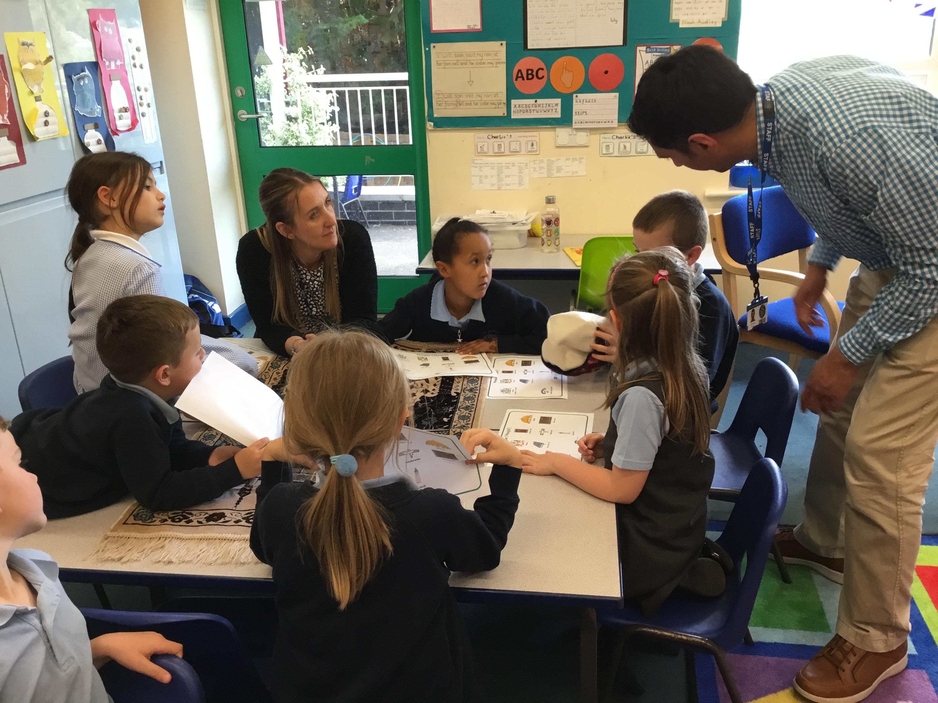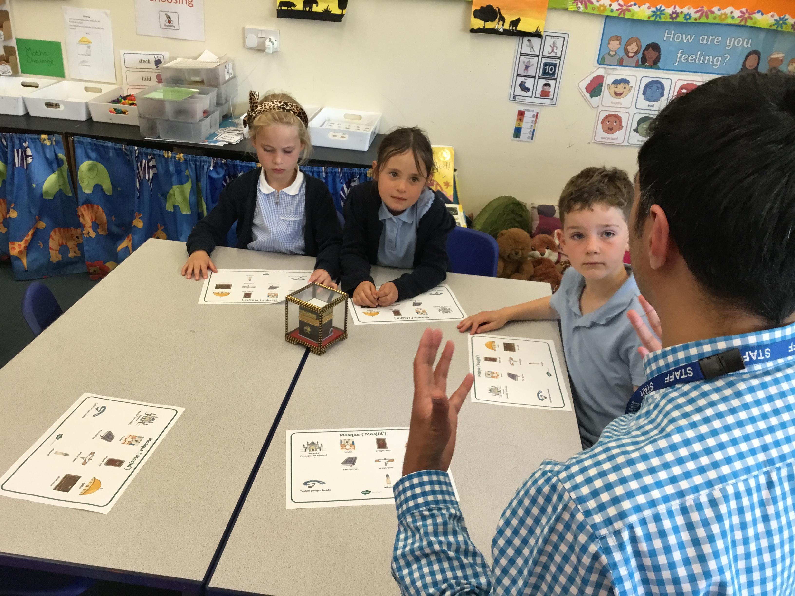 Mr Hussain, a teacher from a school in Derby City, came to speak to the Year 1 children about his religion of Islam. He discussed the rituals of prayer, the purpose of Ramadan and the main features of the religion. The children were extremely interested and were able to touch the artefacts which were brought in. These included prayer mats, one of which had an inbuilt compass enabling Mecca to be found easily. There was also a small-world Mosque as well as some Prayer beads and a replica of Qubba.